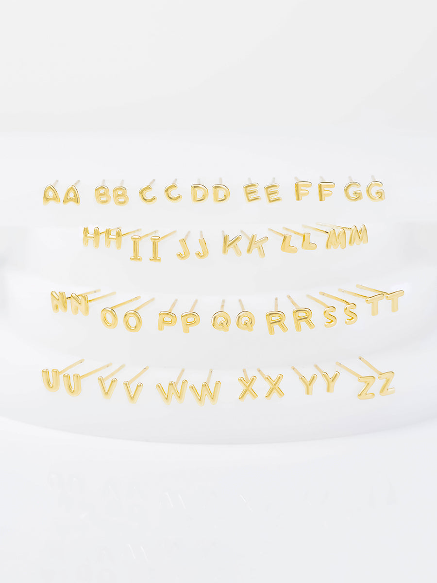 Alphabet Bubble Gold Stud Earrings