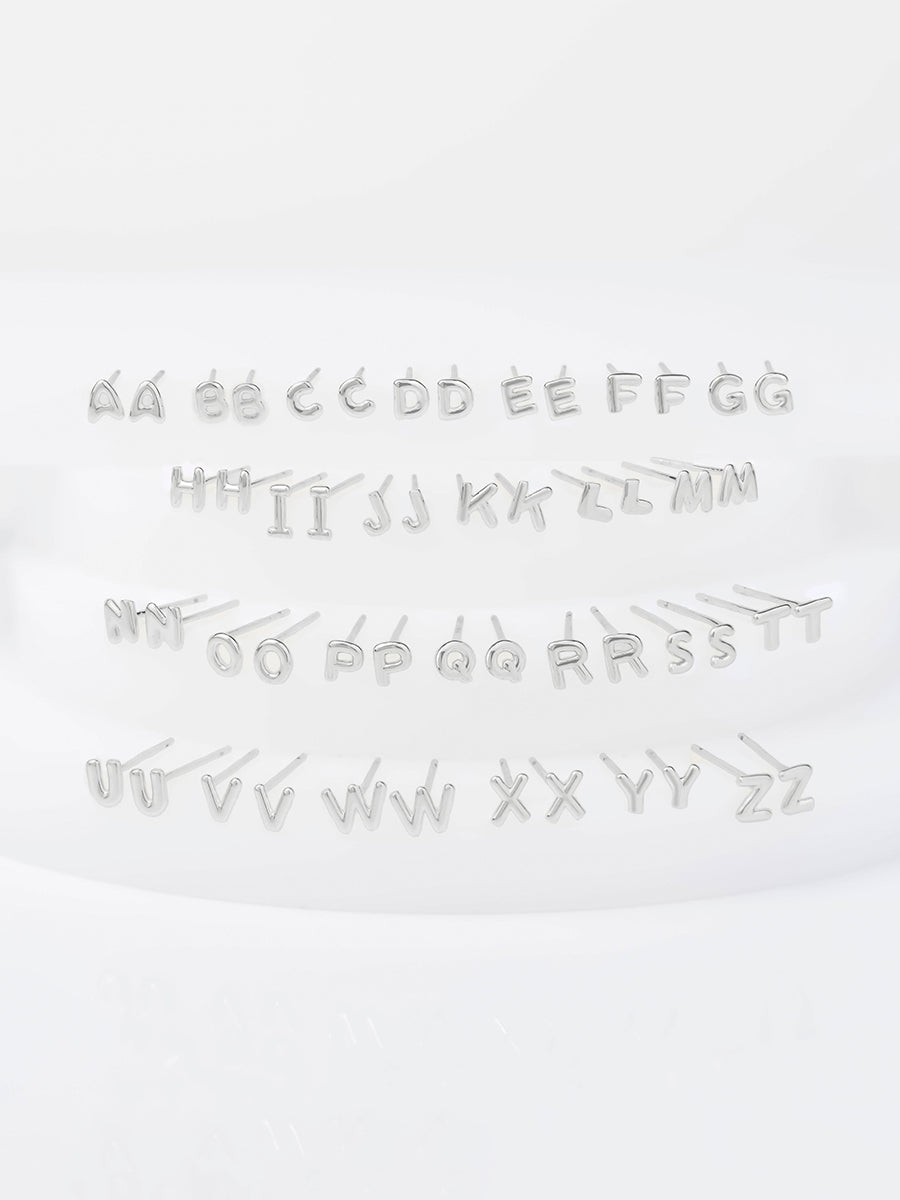Alphabet Bubble Silver Stud Earrings